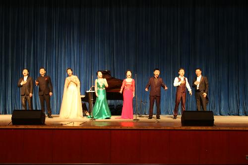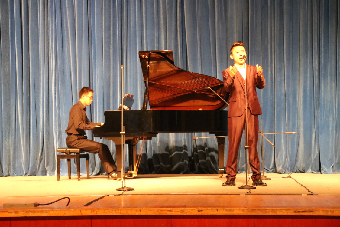 在刘威老师开场致辞的悦耳余音中,李小兵老师开始了此次音乐会的首场表演——意大利歌剧《普罗旺斯陆地和海洋》,以悠扬的抒情男中音唤起了每一个人向往音乐与美的情感。接下来是由谢懿真老师演唱的艺术歌曲《梁祝新歌》。如果说李小兵老师的男中音犹如一汪清泉,那么谢懿真老师的女高音就是惊涛骇浪,好似蝴蝶翩翩起舞,却引发了一场飓风。由任璐璐老师演唱,由于右任先生的诗歌谱成的艺术歌曲《望乡词》则震撼了每一位观众。“大陆不可见兮,只有痛哭。”一时间悲痛而坚毅的情怀感染全场。悲痛过去,由艾群轶老师演唱的意大利歌曲《请你告诉她》引领观众走进一位苦恋中的少年的心。由宋雪老师演唱的中国歌剧《我的爱将与你相伴终生》以曼妙的歌声将热恋的情感再度升华,青春的气息吹拂着舞台。一个接一个精彩的表演,每一次都带给我们不同的高雅享受,或爱,或恨,有圆满,也有遗憾。当艾群轶老师带来的民歌《再见了大别山》响起时,浓烈的爱国热情不断引发观众的共鸣,气氛进入了新的高潮。接下来,多姿多彩的民歌打开了新的音乐之门,由赵清老师演唱的藏族民歌《来香巴拉看太阳》和由魏丽星老师、杨彦宝老师合唱的《一杯美酒》以及由李小兵老师、任璐璐老师合唱的哈萨克族民歌《手挽手》,每一首民歌都凝聚着一个民族的文化,展现着一种传承的积淀。最终,音乐会在送给毕业生的祝福,大合唱《为你歌唱》洋洋盈耳的歌声中缓缓落幕。